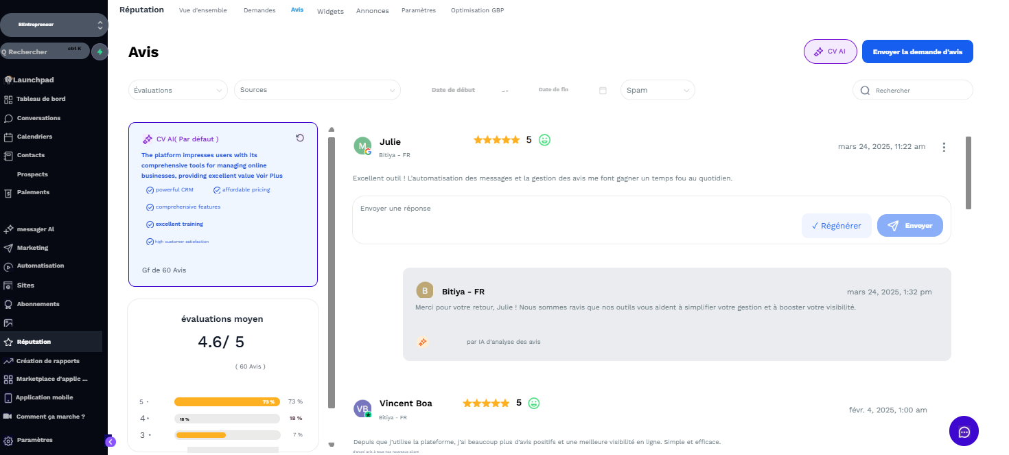 Tout se déclenche avec l'IA sans action manuelle : demandes, réponses avis...