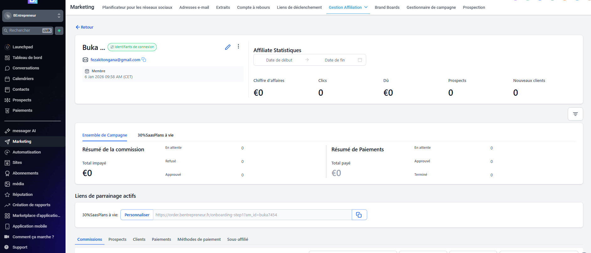 Les affiliés génèrent des ventes constantes depuis que j'utilise la plateforme gestion affiliation de BEntrepreneur.