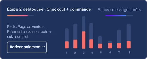 Après : page + paiement + relances propres → tu récupères les indécis sans spammer tout le monde.